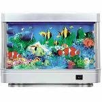 Product DescriptionInstantly create a relaxing, illuminated atmosphere with this animated ocean lamp. Featuring twin rotating panels, you'll watch as exotic fish swim in unison against a wall of moving coral, creating a fascinating underwater illusion...without water!