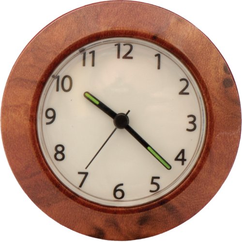 Product DescriptionThis wall clock has a glowing face that make it easy to tell time in the dark. Battery powered, this clock is always on and keeps time when unplugged or during a power loss. Plugs into standard outlet. Faux wood finish frame. Glowing clock face. Second hand sweep. 2 3/4" wide. 2" wide face. 3/4" deep.