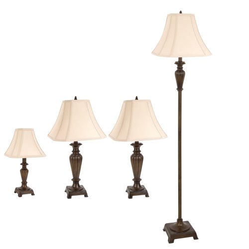 Globe 6860501 Floor and Table Lamp, Dark Wood Finish, 4 Pack Combo
