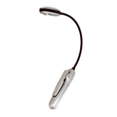 Product DescriptionLED Travel Flex Book Light. These tiny lights are small enough to fit into a purse; back-pack; glove box and more so you have them when you want them for reading a book; a map or even for embroidery. This light features high intensity LED that never needs replacing; precision engineered reflector casts uniform light; flexible arm that allows for precise adjustment to an infinite number of positions; a strong narrow clip a book spine or cover securely; light easily bends to a compact position for storage (3-1/2x2x2in); light includes one AAA battery and is available in a variety of colors. Light measures 10x1x1in. 1 year limited manufacturers warranty.