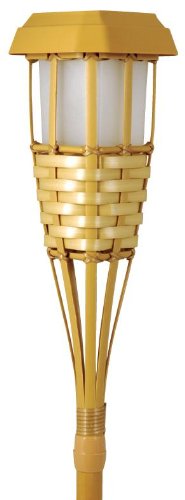 Product DescriptionThe Moonrays 91206 Solar Powered Bamboo Party Torch is a safe alternative to oil-based torches. The flickering amber LED of the torch simulates the flicker of a candle. The torch glows at night and charges during the day. Feature a durable plastic and bam