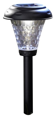Product DescriptionHammered glass look plastic lens. Powered by the sun, no wiring required. Warm white LED never needs replacing, wide angle beam. 12" area of illumination, 2.5 lumens per fixture. Rechargeable battery included.
