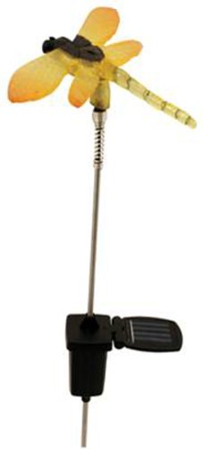 Product DescriptionWatch this dragonfly come alive in your garden as it slowly changes from 1 color to another. Polyresin dragonfly. Solar rechargeable NiCd battery (included). 3 color changing LEDs.